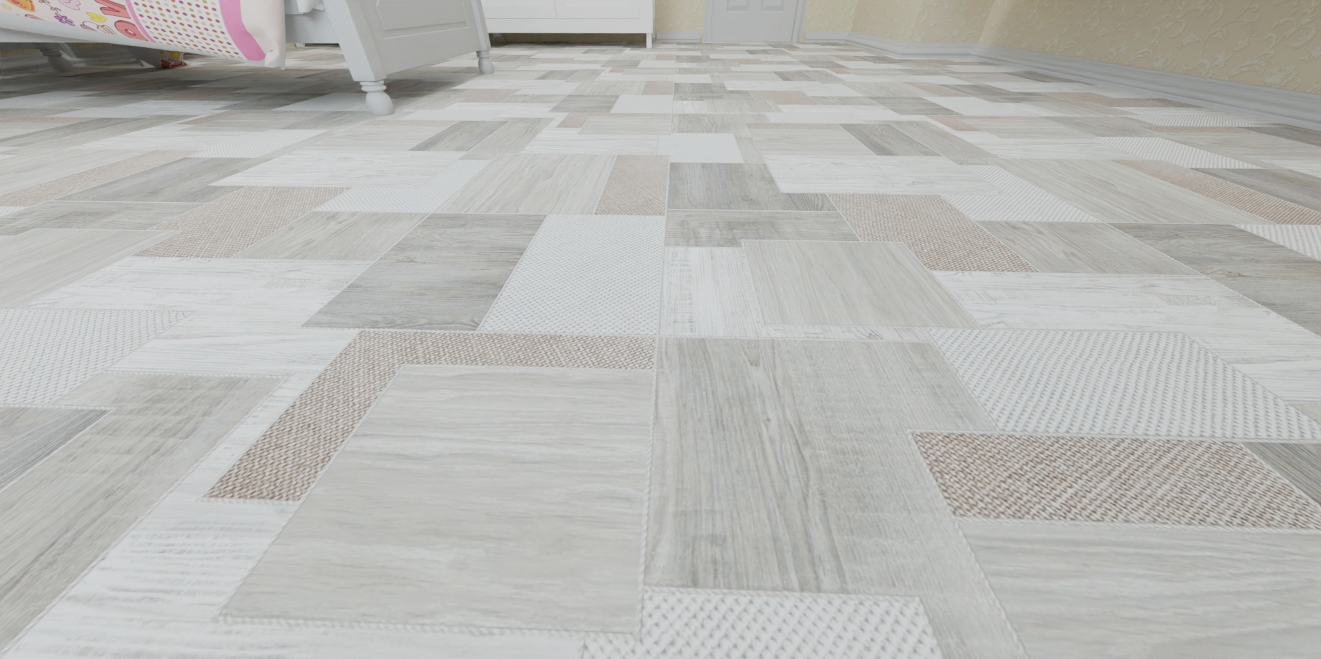 - Толщина защитного слоя 0,35 мм уже выше средней, поэтому линолеум можно смело укладывать в коридоре и на кухне.